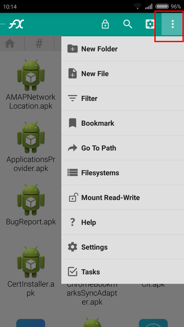 - Aprire l’applicazione FX appena installata e toccare l’icona con le 3 linee in orizzontale in alto a sinistra