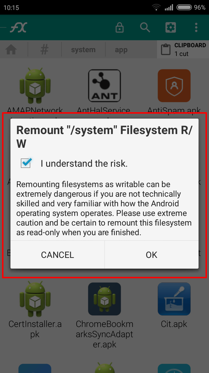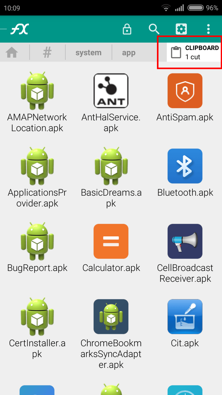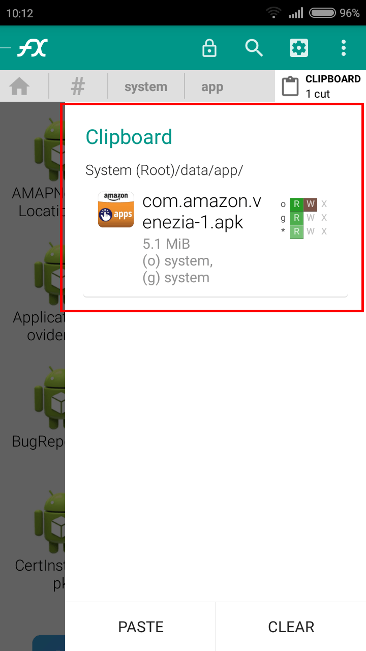 - Abbiamo quasi finito, ora per trasformare una applicazione Android in app di sistema, non rimane che andare a premere su Clipboard in alto a destra e si aprirà una nuova schermata, con scritto Paste (incolla), basta quindi premerci sopra e l’applicazione verrà trasferita sulla cartella System, diventando un’app di sistema.