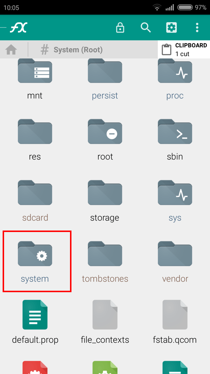 - Entrare sulla cartella System (verranno chiesti ora i permessi di Root)