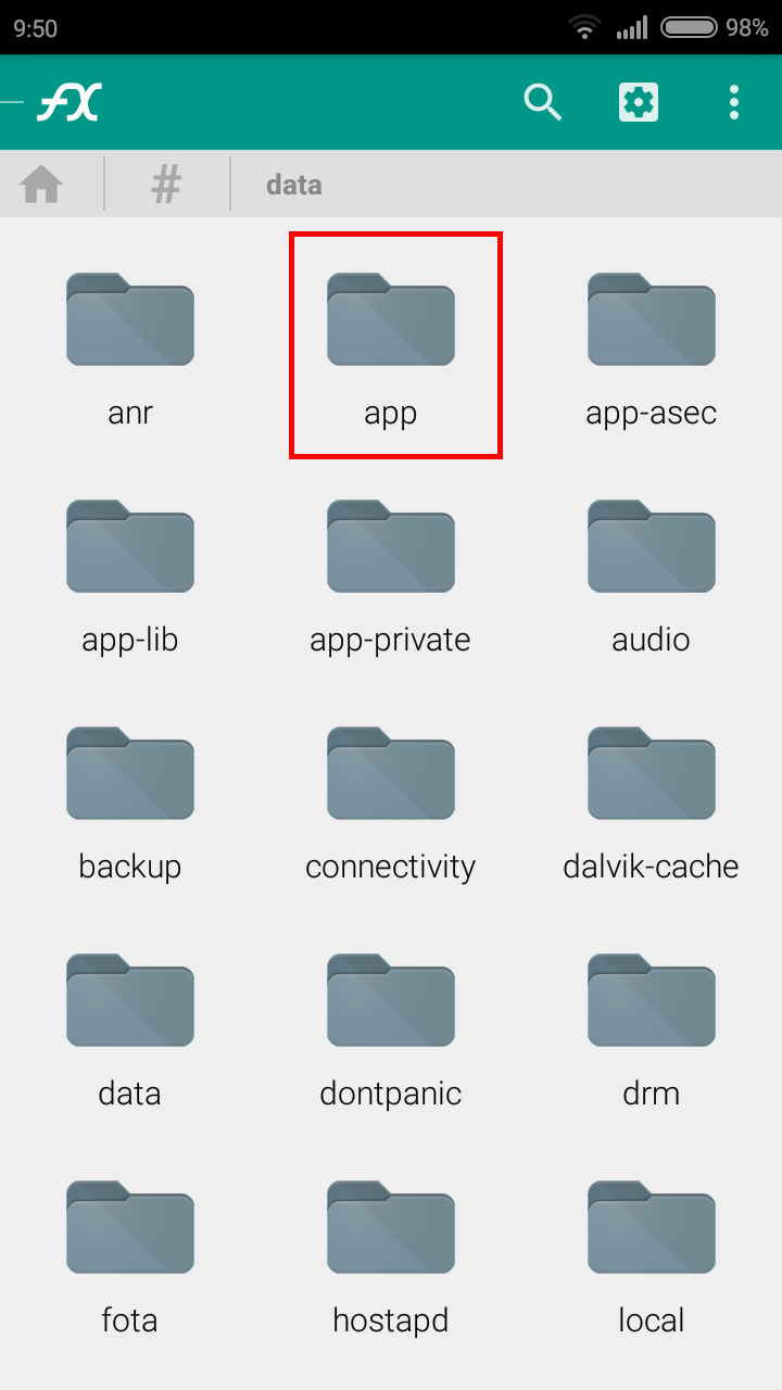 - Fatto ciò, tornare indietro sulla lista di cartelle vista all’inizio (dove è stata trovata la cartella data) e premere sulla cartella System e nella schermata successiva su app